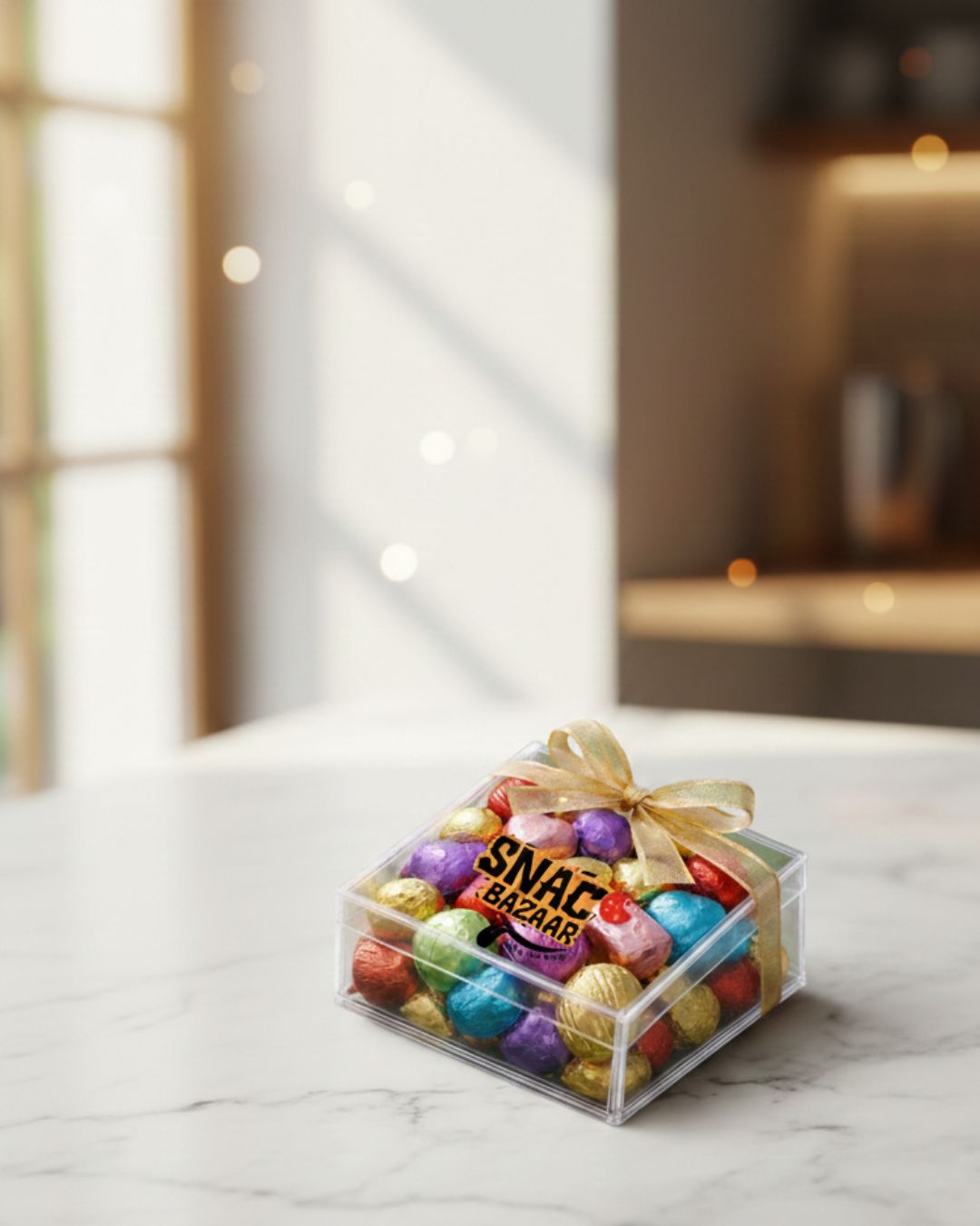 Premium Gifting: Elegantly packaged in a clear, square boutique box and finished with a signature gold ribbon.